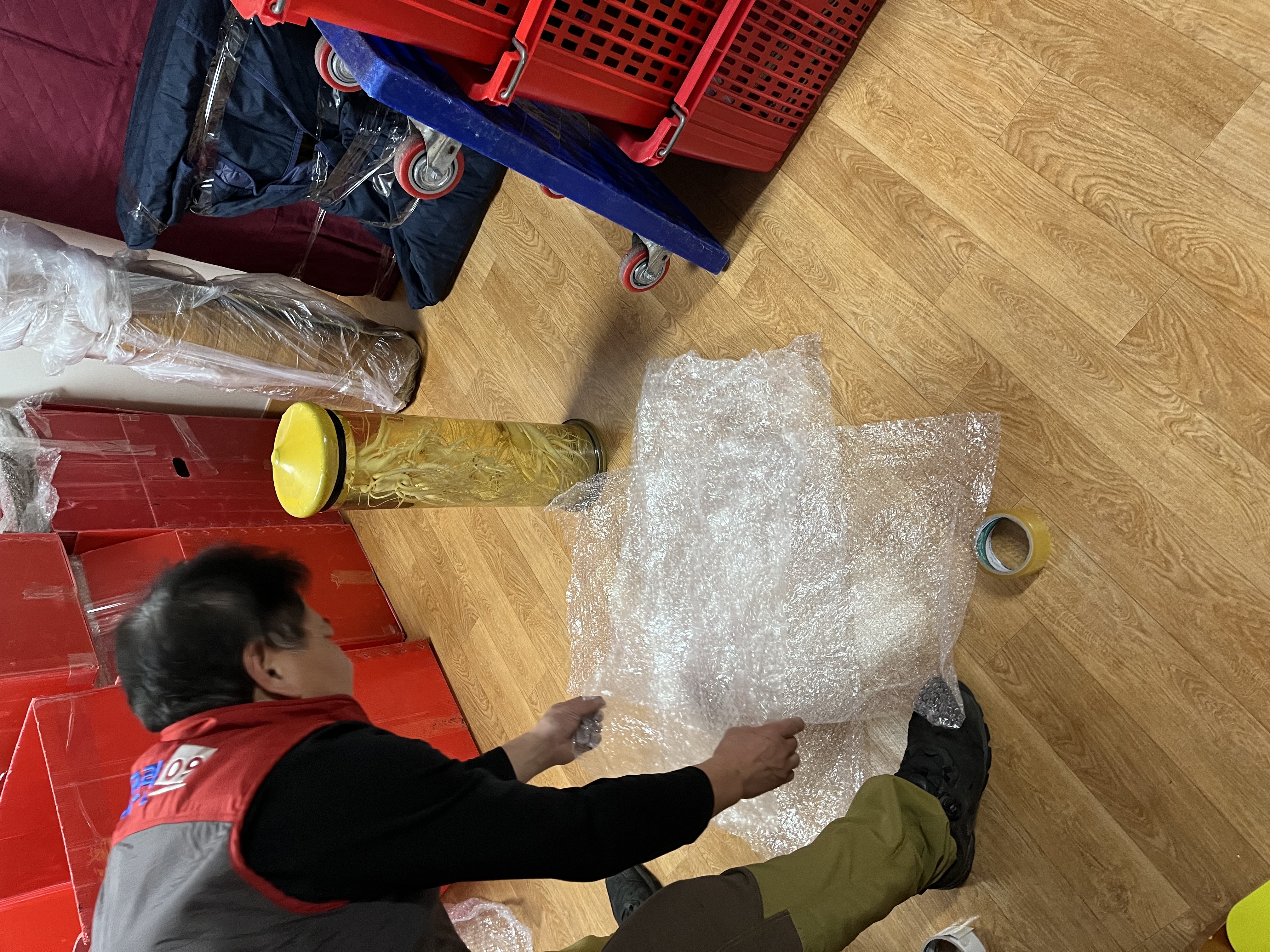 바닥을 보강해주는 매트를 깔아서 짐을 이동시켜주셨어요 !