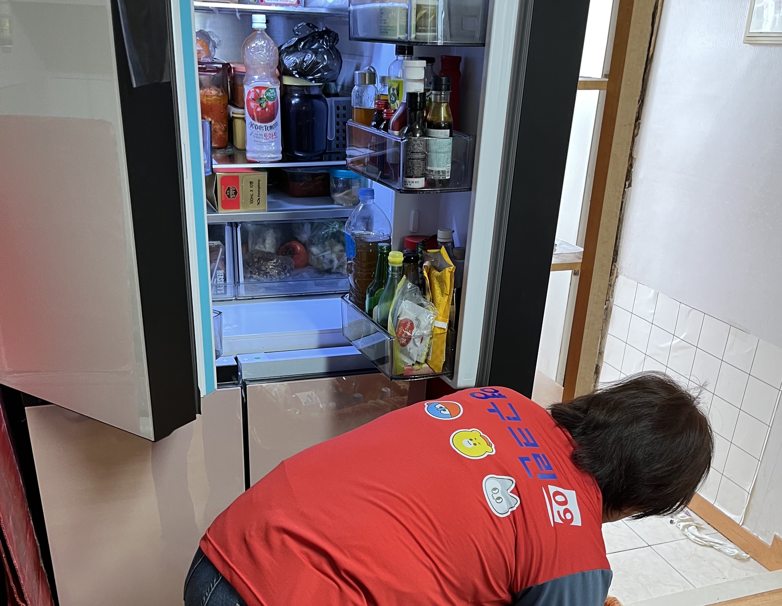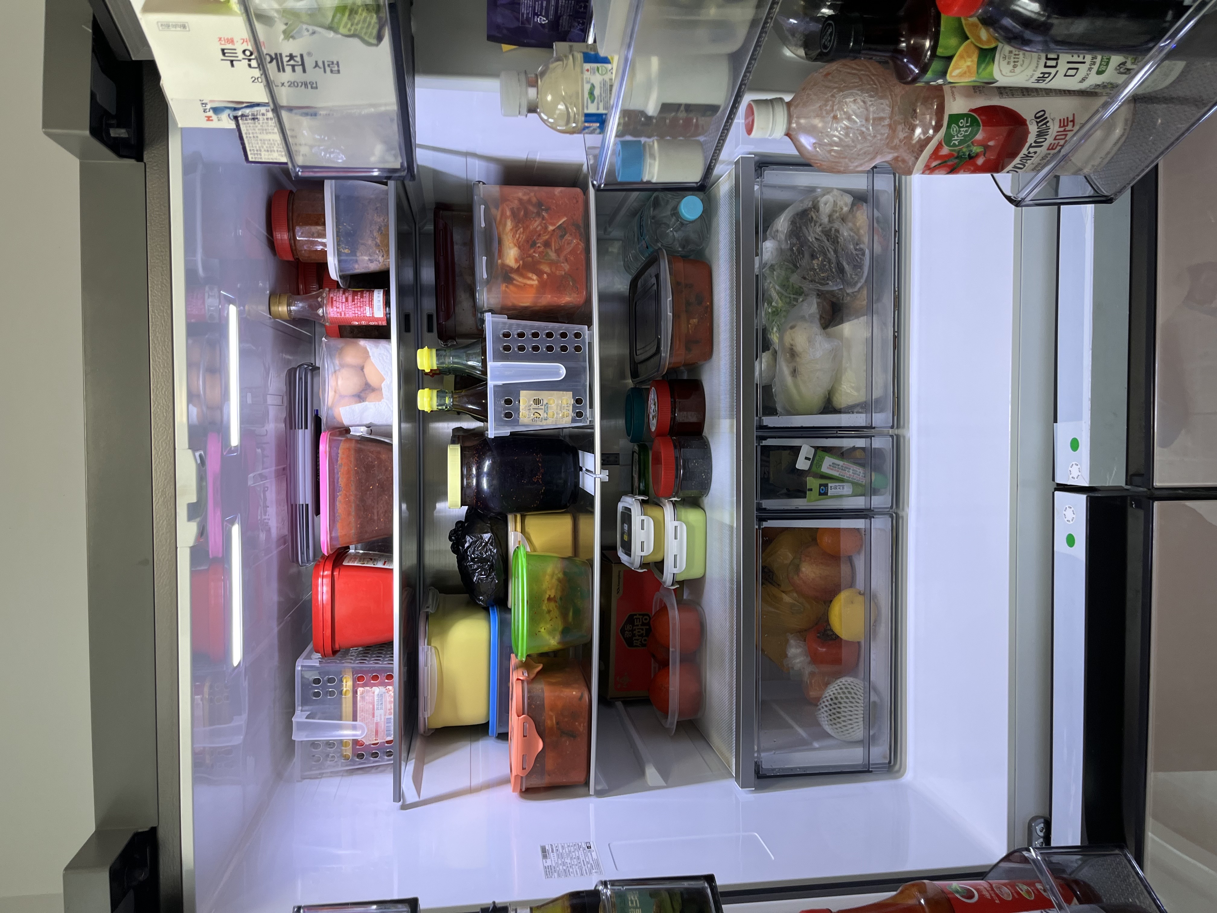 냉장고 구역을 나눠서 정말 깔끔하게 정리해주셨어요.... 최고... .