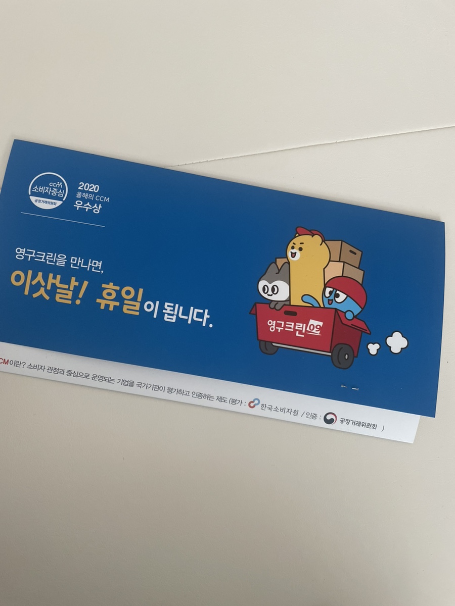 영구크린 서비스 이용과 더불어 격려의 메시지 주심에 감사드립니다