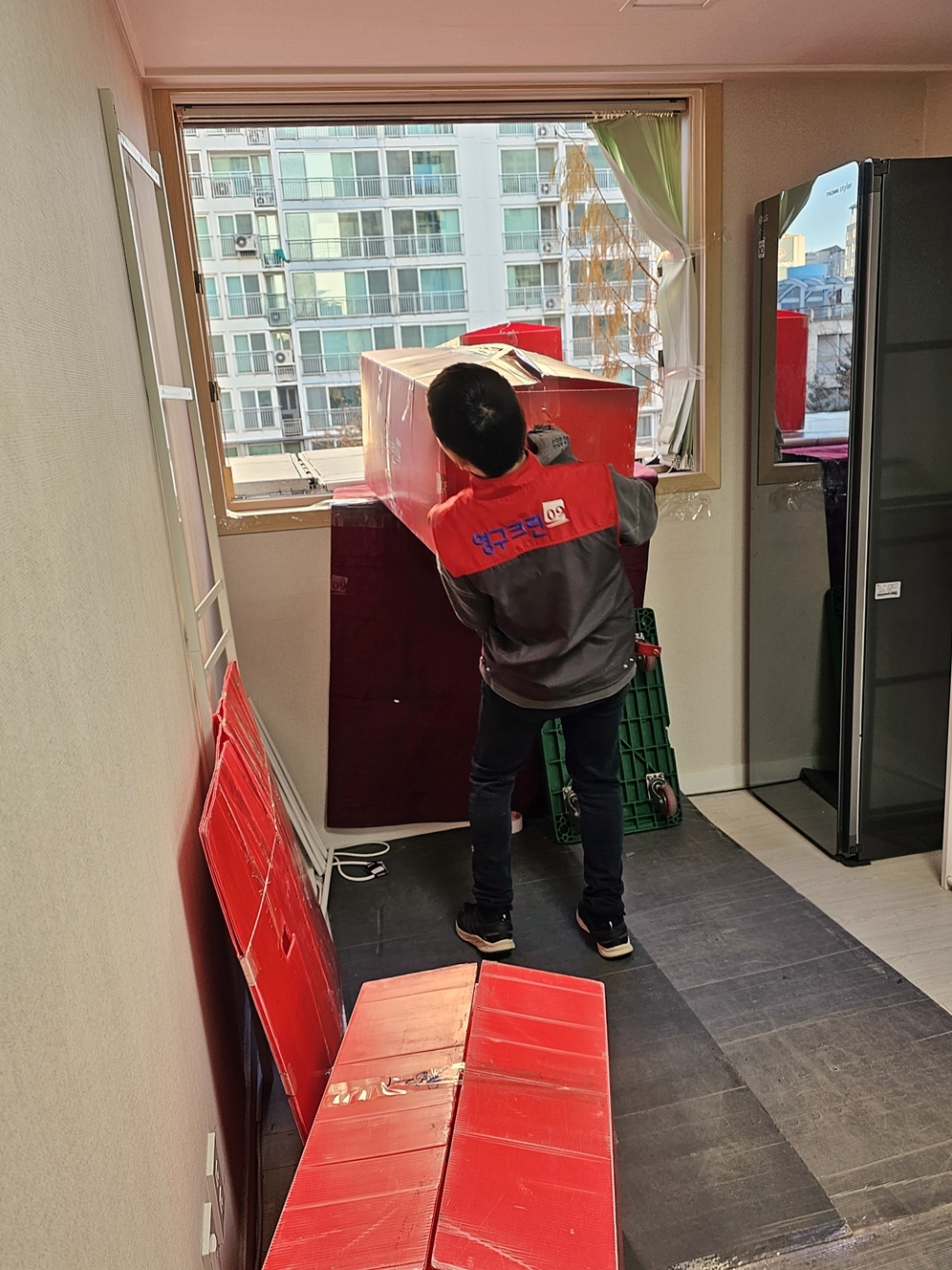 오전 7시 50분쯤 영구이사 235호점 팀원 분들이 도착하고 인사를 나누고 작업이 시작되었습니다.저희가 에어컨 등