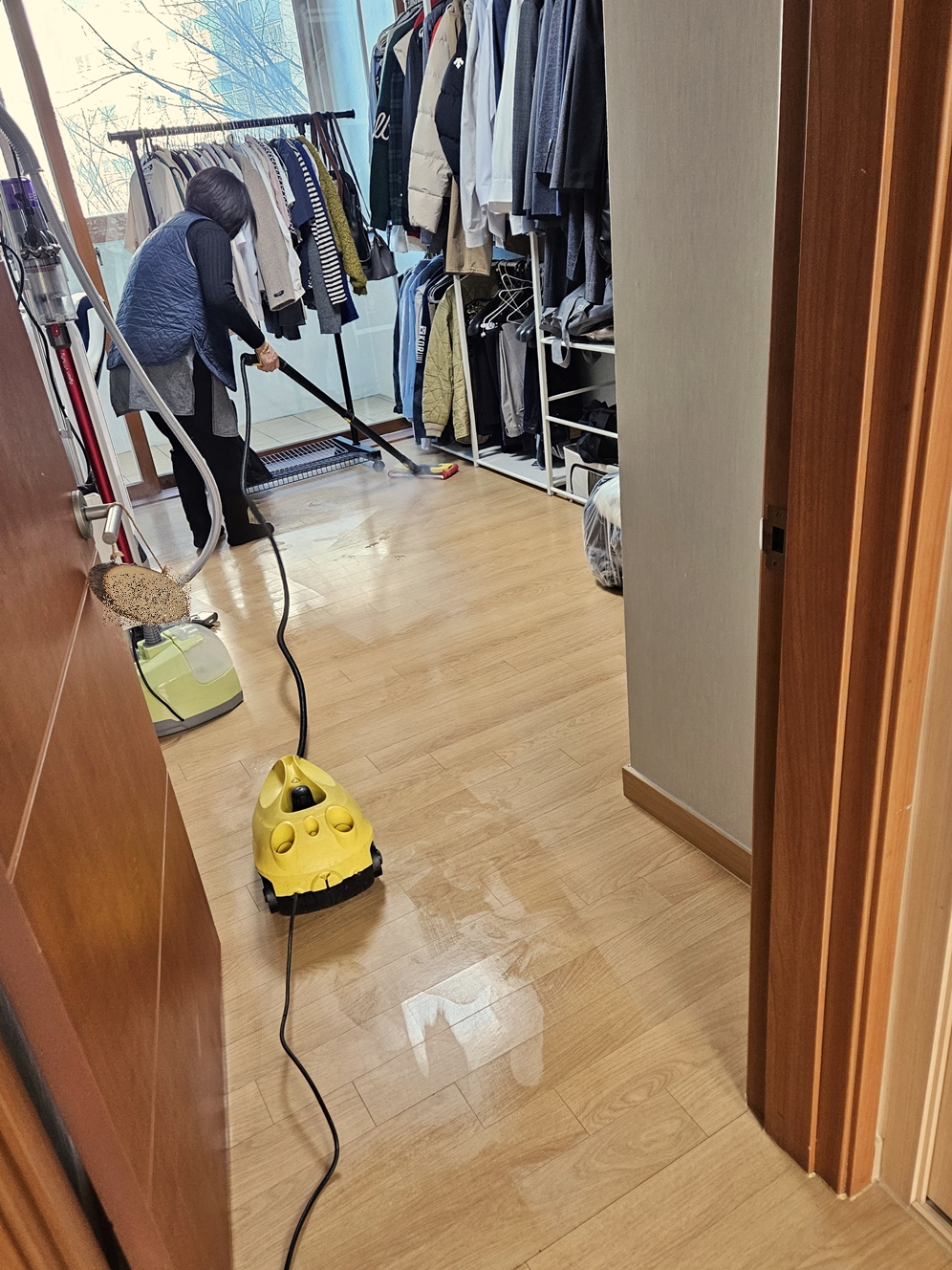 마무리로 청소기를 밀고 바닥 스팀청소와 공간 탈취제를 뿌려주셨어요.