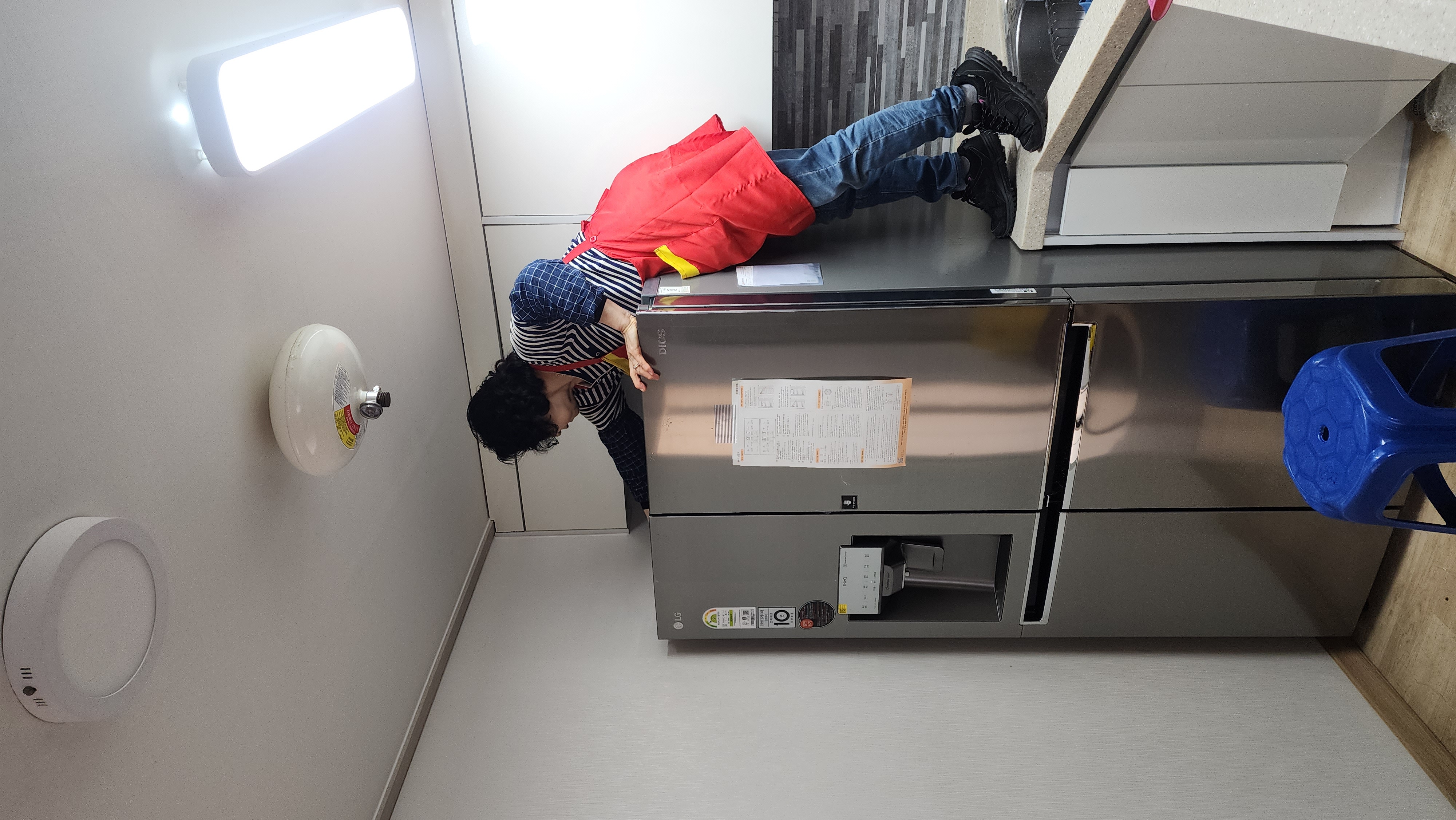 게다가 냉장고 위도 닦아 주시고, 안에도 선반 다 꺼내서 하나하나 물로 닦아주셨어요.