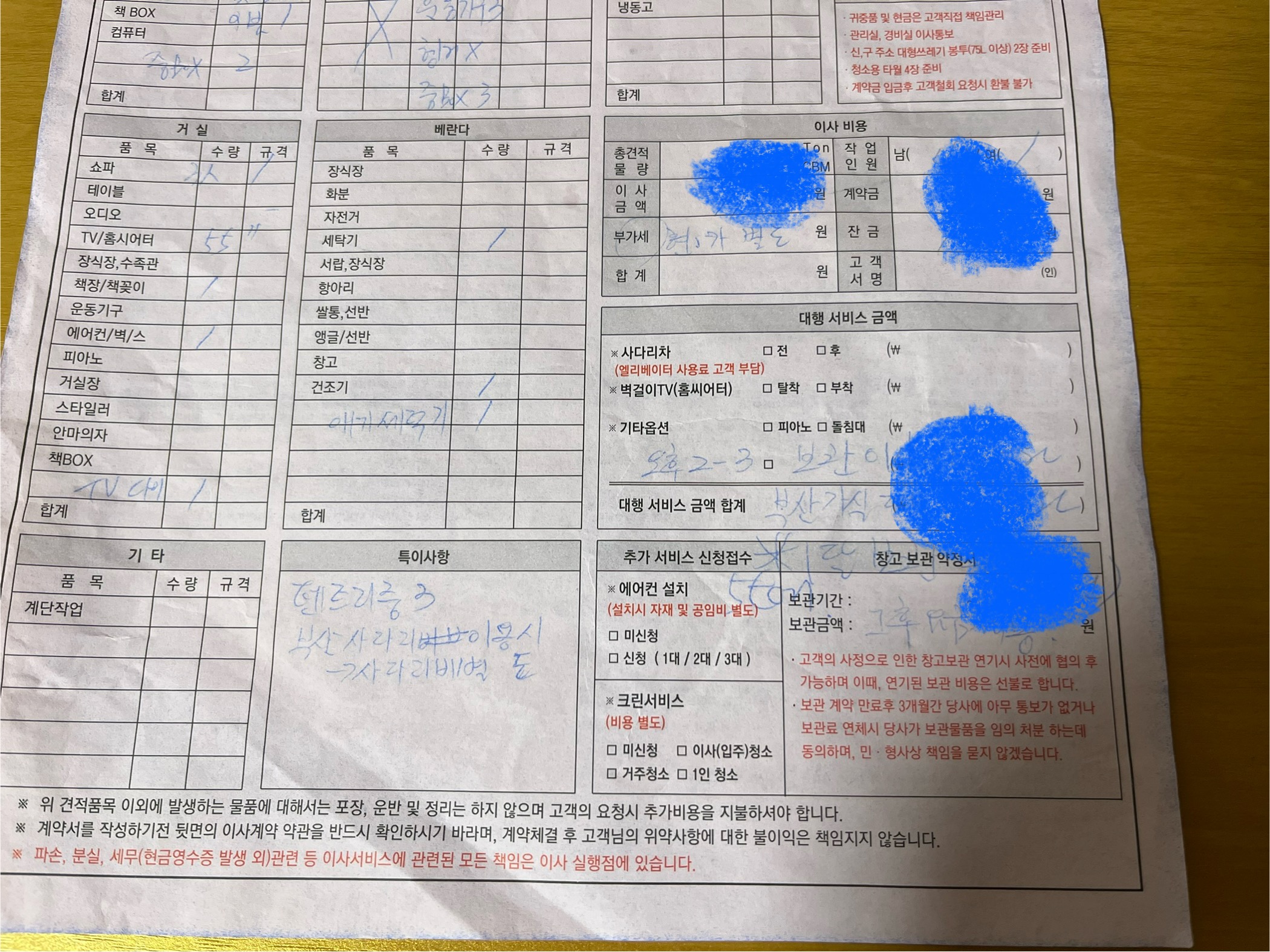 원활한 이사작업 진행을 위해
