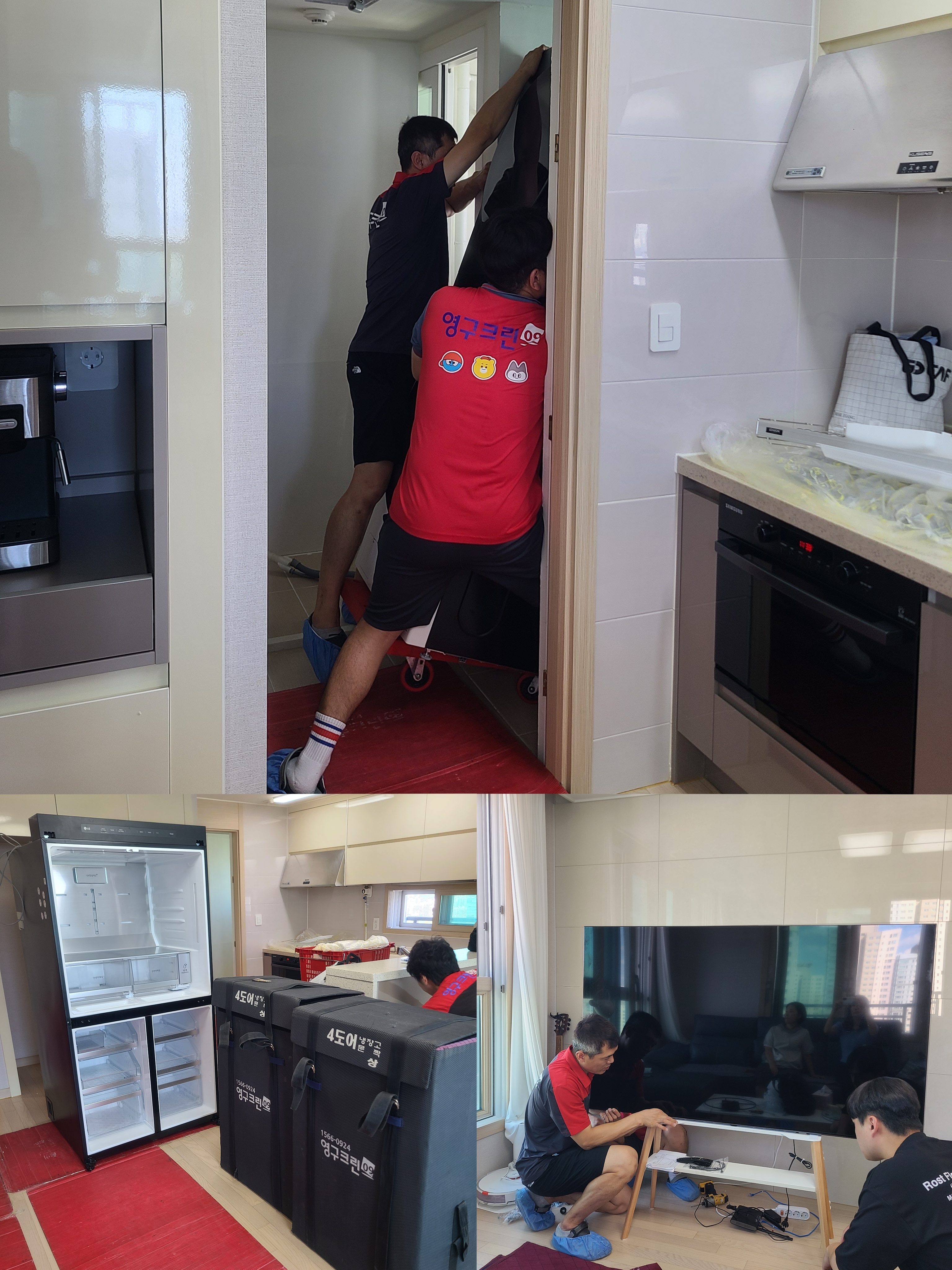 가전들 안긁히게 하려고 열심히 해주셔서 너무 감사했어요 ㅠㅠ 워시타워 넣는모습도 찰칵!