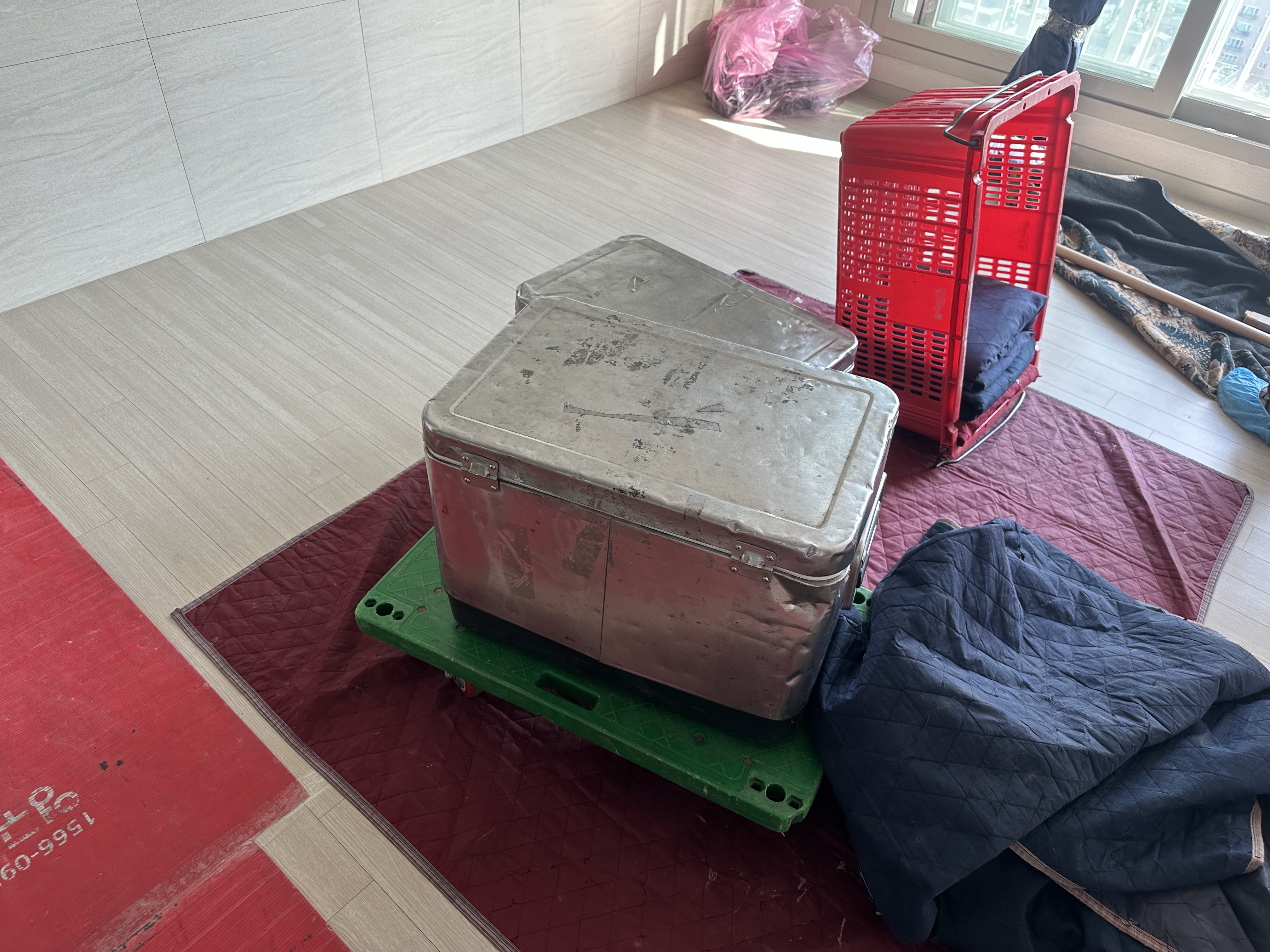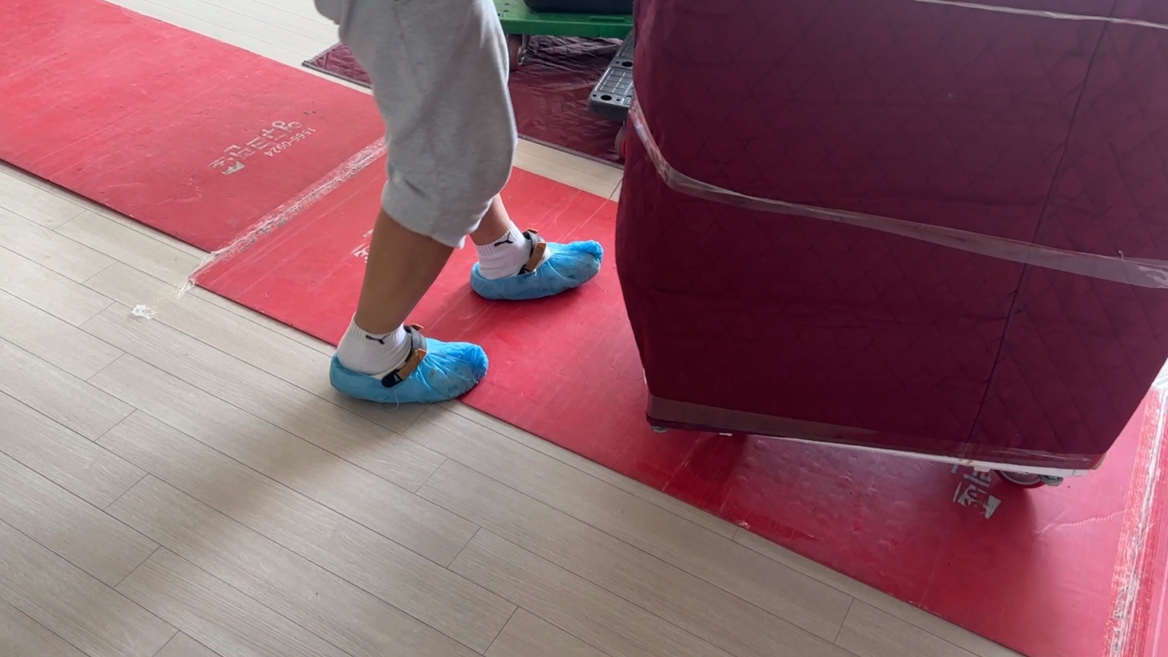 모두 박스와 러그(?) 같은 것들을 깔아서 바닥 보호해 주셨어요.