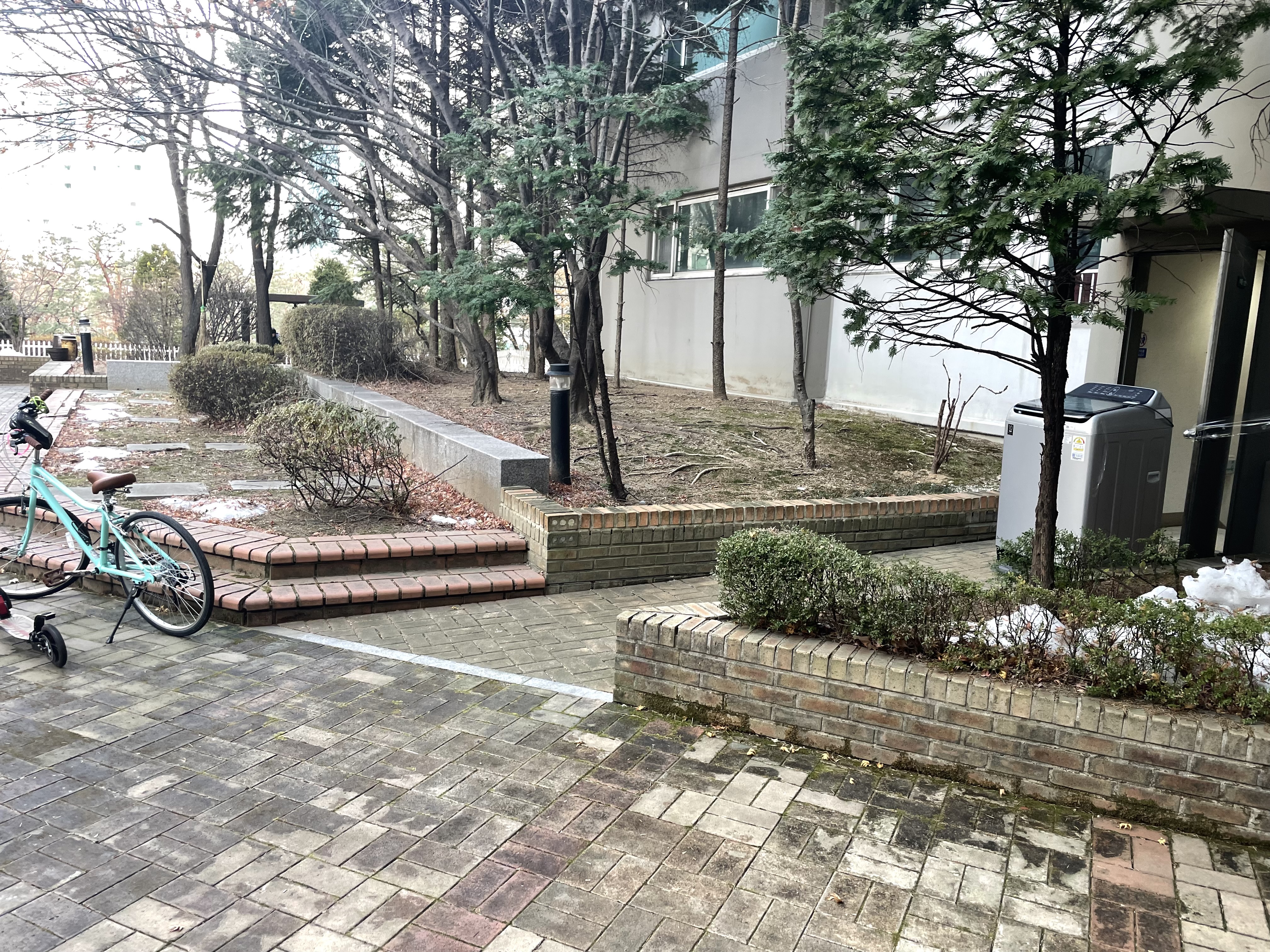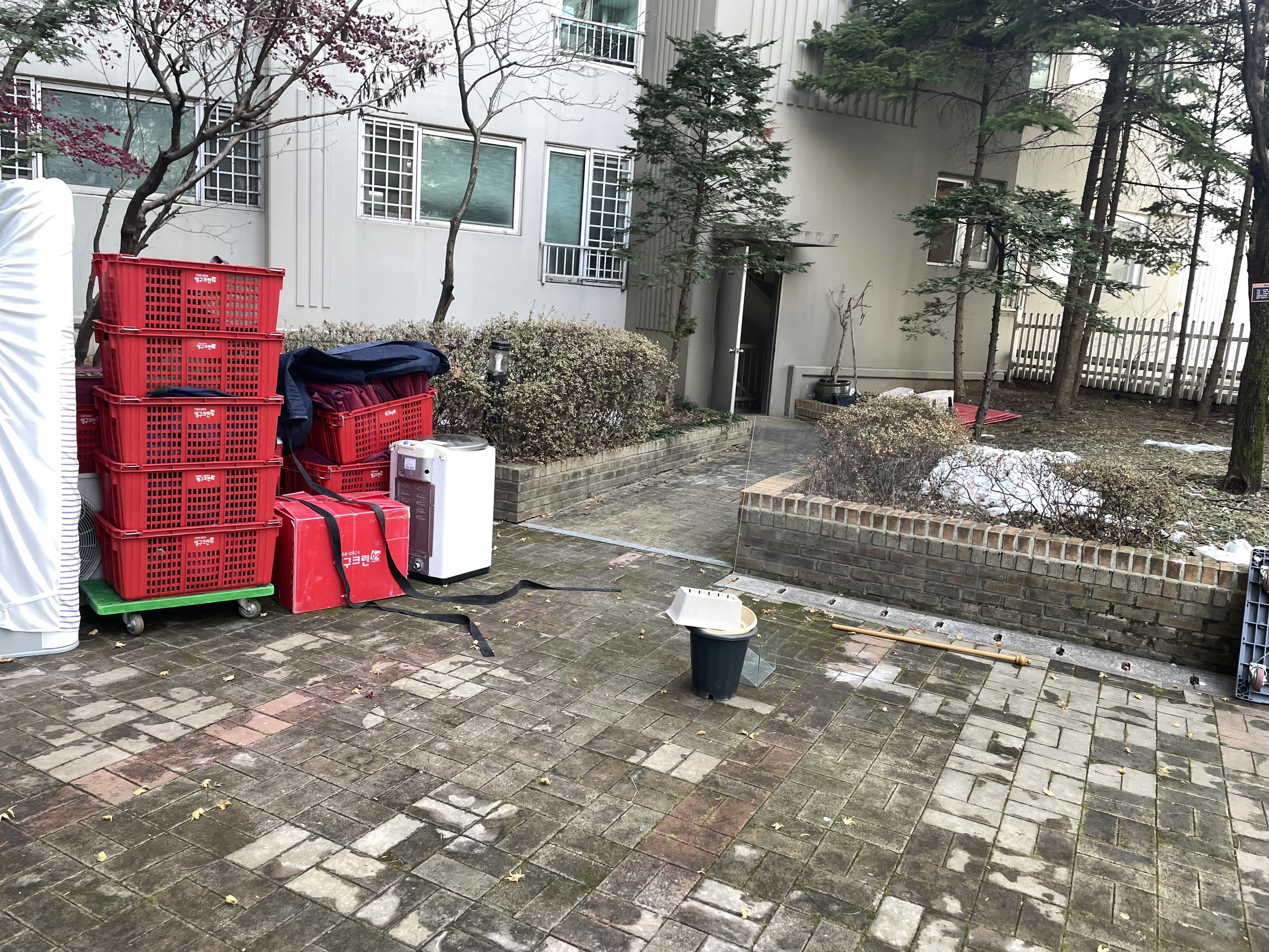 같은 층에서 반개단을 내려가 공용 공원을 이통 다시 반계단을 올라가 야 하는 어려운 이사였습니다.