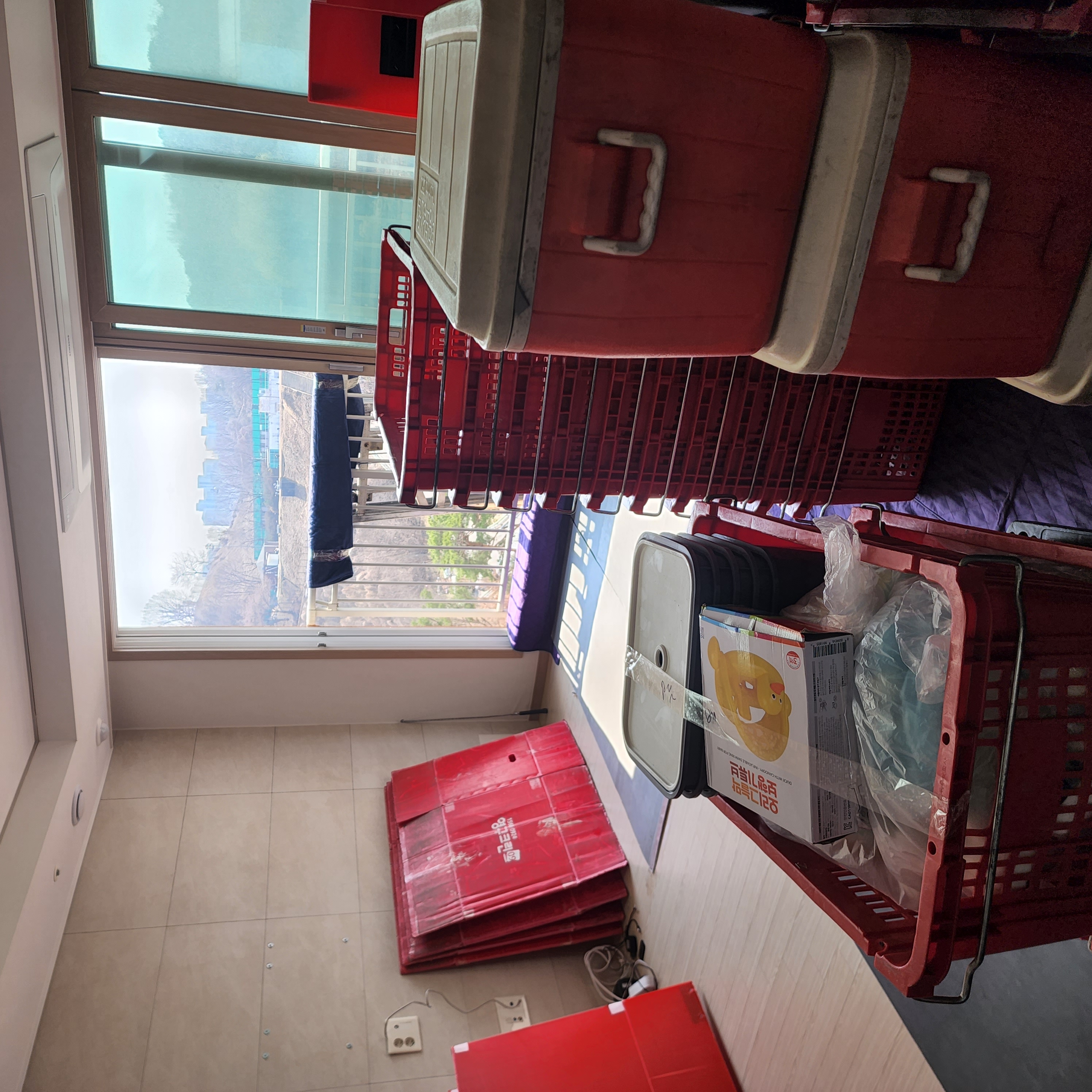 가는 도중에 작업을 시작한다는 얘기를 듣고 1시간 정도 후에 도착했을때 사진을 찍었는데 역시나 바닥보강도 잘 되어있었고 짐포장도 잘 되어있었어요. 지연이 된 만큼 전입신고나 관리사무소에 방문하기 위해 다시 외출을 했고 집으로 다시 왔을땐 이미 끝나있었습니다