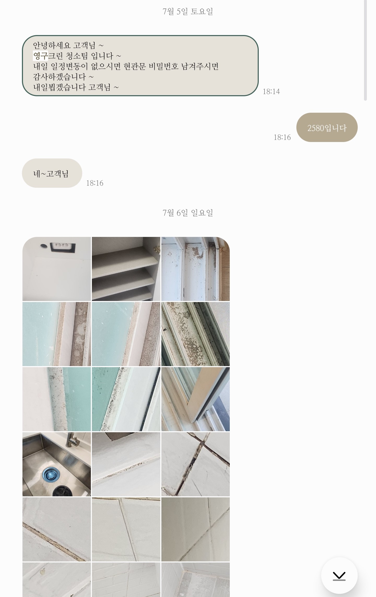 집 상태 확인 후 화장실 곰팡이에 추가 요금이 들긴 했지만