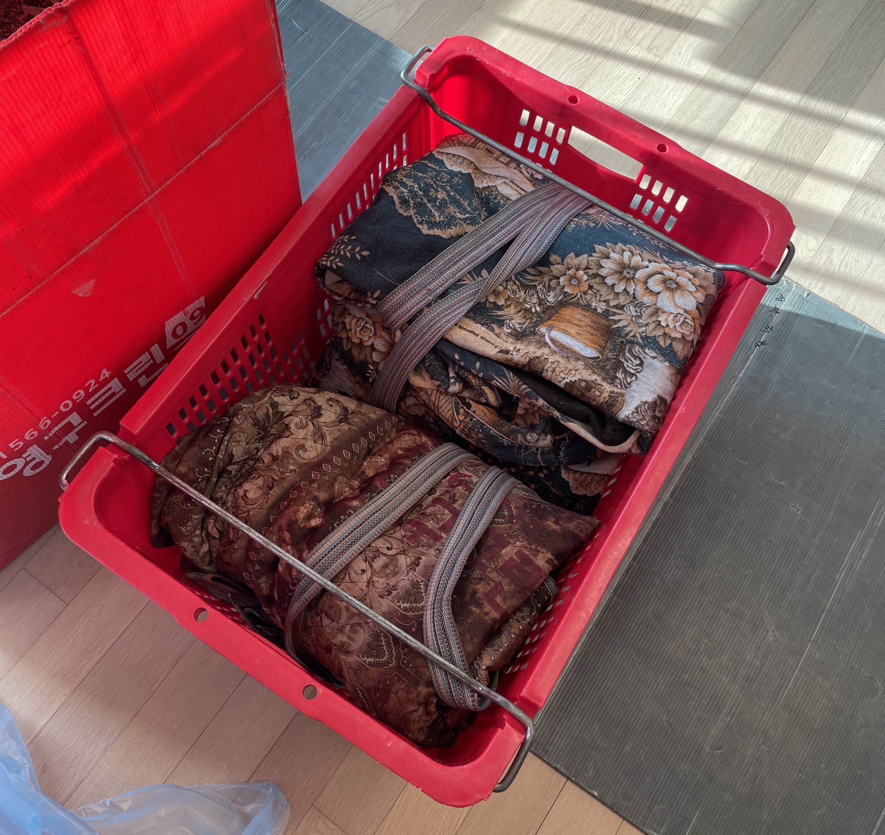 당일 아침 8시쯤 시간 맞춰서 점장님 포함 팀원분들까지 일찍 와주셨고, 미리 설명할 것도 없이 직원분들께서 알아서 일사불란하게 움직이며 작업해 주셨습니다. 들고 와주신 수많은 이삿짐 바구니, 박스, 보호캡, 가전 전용 보호장비 등을 보니 아주 든든하였습니다. 크고 무거운 가전가구들을 옮길 때 바닥에 기스가 나지 않도록 바닥에도 판자들을 잘 깔아주셨어요! (이사간 집도 마찬가지)