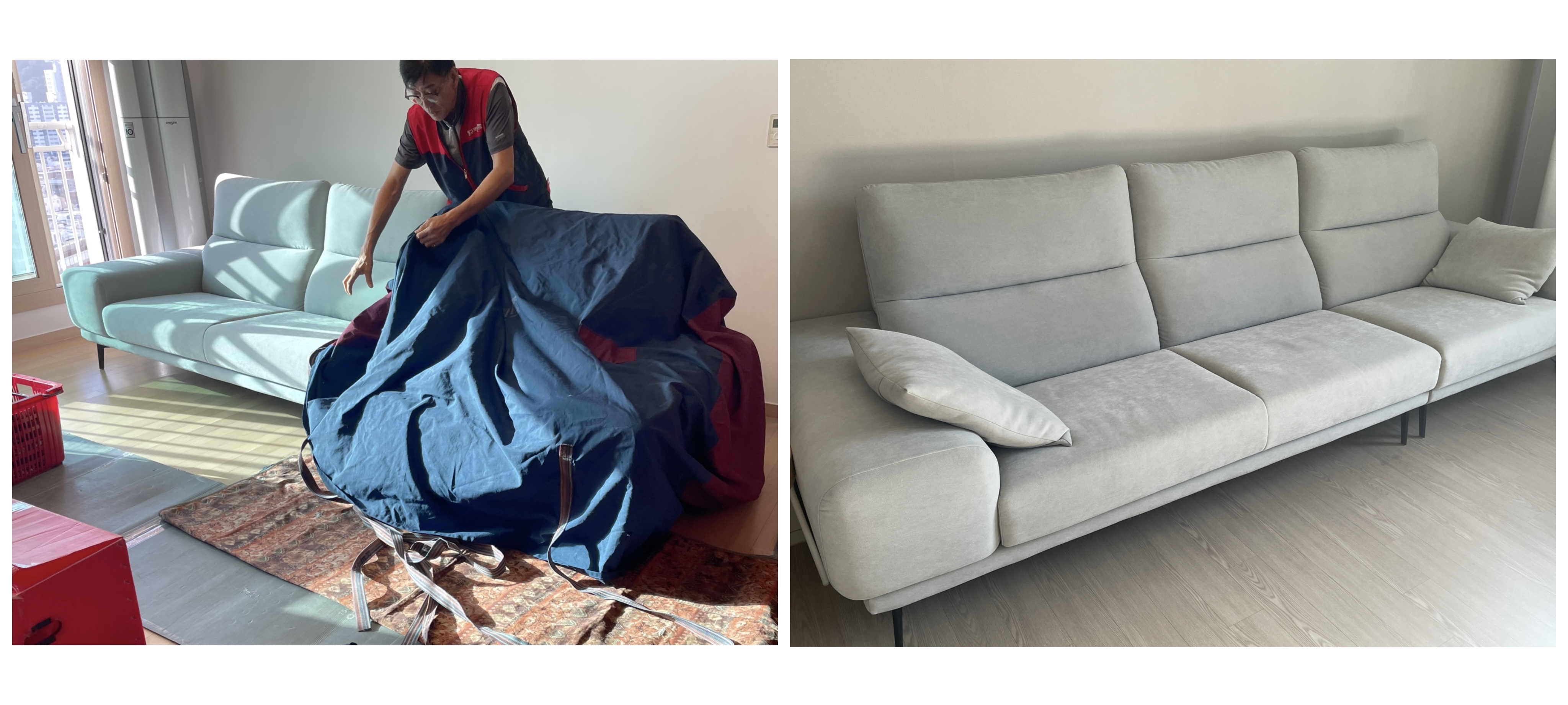 쇼파는 이사 중에 눌린 자국 생길까 봐 걱정했지만 전혀 이상 무!