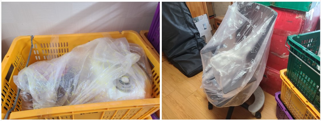 다만 저희 집은 보관이사였기에 장기간 보관 시 발생할 수 있는 먼지나 오염을 방지하는 것이 최우선이었습니다.