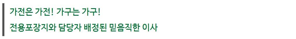 가구의 경우에는 가구만 전문으로 하시는분께서 분해와 포장을 동시에 해서 막막했던 이사가 일사천리로 굉장히 빠르게 진행되었습니다.