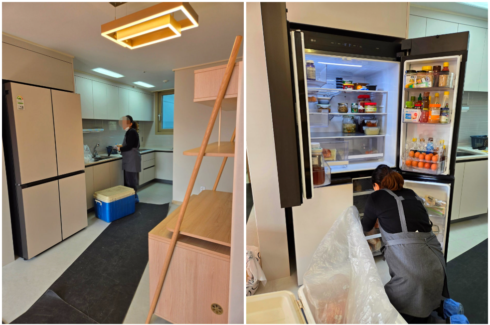 주방전문 여사님께서는 와이프와 잠시 대화를 하시더니 처음 있던 그대로 순간이동 시킨 것처럼 정리를 시작하시는데 그걸 다 기억하신건지 아니면 경험으로 하시는건지 놀라울 정도로 차분하게 정리해서 넣어주시는데 너무 감사했습니다.