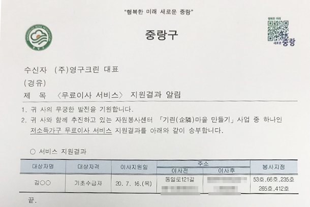 ![]() 2020년 7월 16일 53호, 66호, 235호, 265호, 412호 무료이사지원 서비스