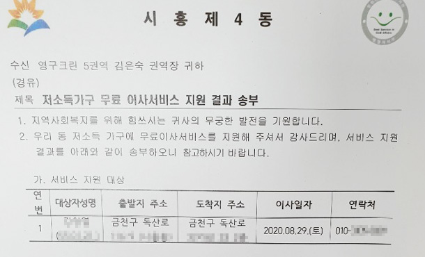 2020년 8월 29일 55호, 273호 무료 이사 지원 서비스