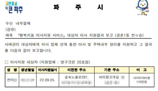 2022년 9월 5일 20호 무료 이사 지원 서비스