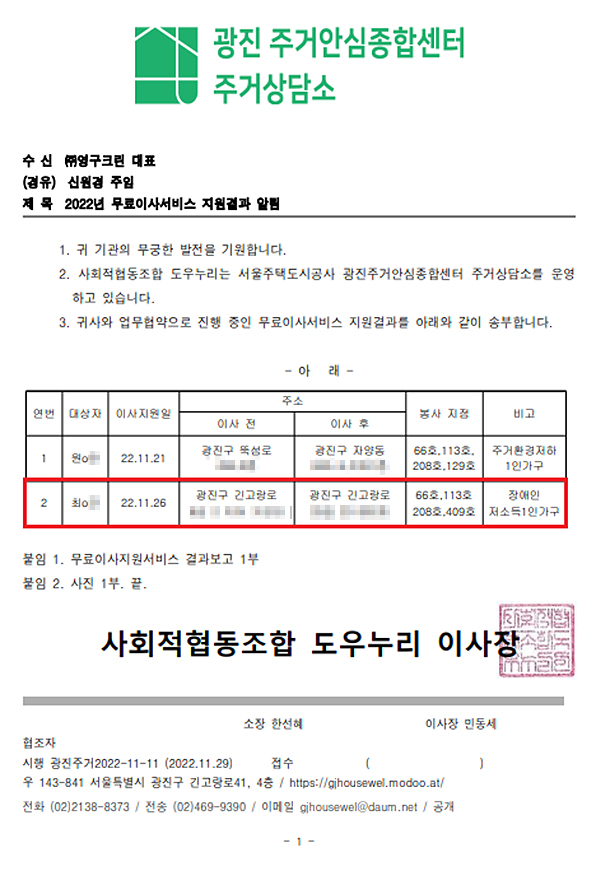 ![]() 2022년 11월 26일 66호, 113호, 208호, 409호 무료이사지원서비스