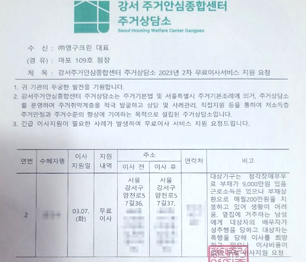 2023년 3월 7일 109호 무료 이사 지원 서비스
