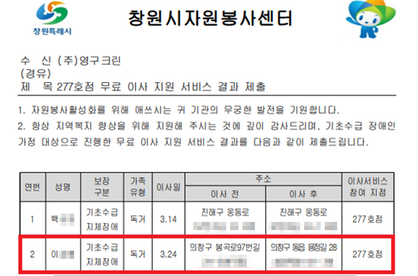 2023년 3월 24일 277호 무료 이사 지원 서비