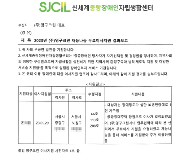 2023년 5월 29일 66호, 113호, 208호 무료이사지원서비스