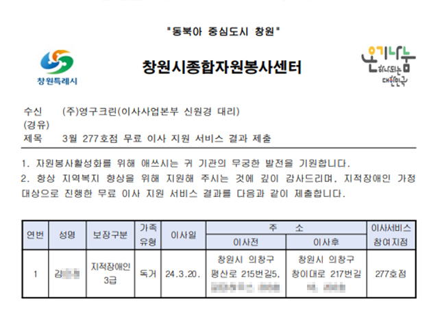 2024년 3월 20일 277호점 무료 이사 지원 서비스