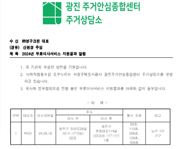2024년 5월 16일 66호, 113호, 208호, 129호, 409호 무료이사지원