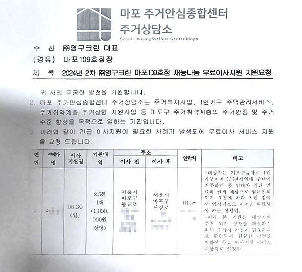 2024년 6월 30일 109호점 무료 이사 지원 서비스