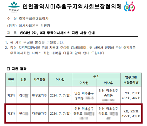 2024년 7월 7일 9호, 227호, 425호, 433호 무료이사지원서비스