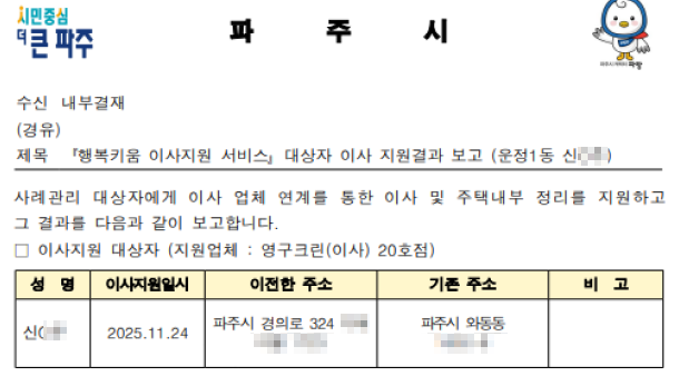 2025년 11월 24일 나눔봉사단 20호점 무료 이사 지원 서비스