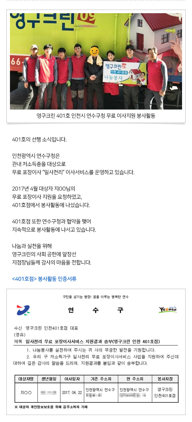 이사나눔의 현장을 가다(인천 연수구)