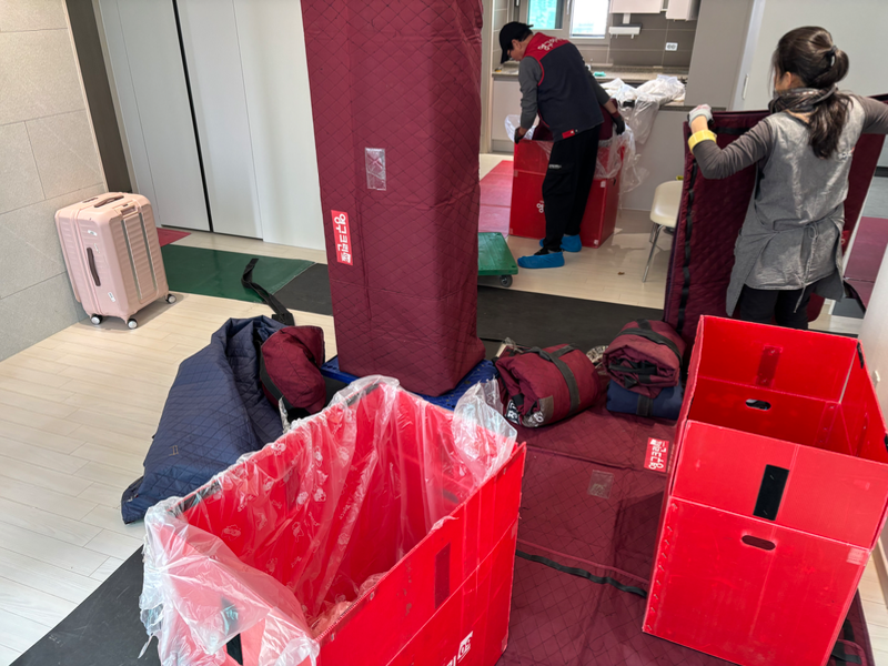 이사나온 집이 좁은 골목 안 주택 2층이고, 이사온 집도 작은 옛날 아파트라 엘리베이터가 없어요. 예전에 몇 번 이사하면서 늘 이사업체에서 물건도 막 다루시고 집도 많이 상해서 이번에는 업체 찾을 생각에 몇 달 전부터 스트레스였는데요.. 잘 해준다고 추천받은 업체들은 다들 큰 차밖에 없어서 저희집은 안 된다고 거절당해서 너무 슬펐어요ㅠㅠ 그러다가 중형 트럭도 갖고 계시는 영구크린 405호점을 우연히 발견해서 연락드렸고 견적 받아서 이사 진행할 수 있게 되었어요!! 나중에 알았는데 후기들도 하나같이 너~~무 좋아서 이사하기 전부터 마음이 많이 놓이더라구요.그래도 조금은 반신반의의 마음으로 대망의 이사 당일을 맞이했는데, 정말 후기에 적힌 그대로였습니다!저희집은 이상철 소장님 팀이 맡아주셨고 이모님 한 분 포함 6명이나 오셨는데 16평 집에서 동선 한번 안 꼬이고 착착착 진행됐어요. 인테리어 전부 새로 한 집인데 신경 많이 써주셔서 집도 물건도 손상없이 깨끗하게 다 잘 들어왔습니다!! 지나간 이사 경험들이 주마등처럼 스쳐지나가면서... 진짜 감동적일 정도로 잘 해주셨어요 ㅠㅠㅠ 이사 나오는 집도 다 바닥 보양 해주시고, 이사온 집에서는 바닥에 카펫 넉넉하게!!! 깔려서 이사 내내 마음이 너무너무 편안했어요... 최고bbb 그리고 박스도 전에 왔던 업체보다 깨끗한 상태!카펫 곱게 접혀서 딱 맞게 쌓인 거 보이시나요.. 몸에 배인 깔끔함과 섬세함이 느껴져서 사진 찍어놨어요다들 무거운거 들땐 파워테토남이신데 정리와 마무리 청소는 이모님 못지않게 너무너무 섬세하게 해주시더라구요,,부탁드리는거 척척 해결해주신 것도 너무 감사해요!! 가구 수평, 문닫힘 안 맞는 것 다 맞춰주셨구요. 또 공간마다 더 잘 맞는 가구 배치 방법도 시원시원하게 제안해주셔서 좋았어요.그리고 소장님이 제 방 정리해주셨는데 자잘한 물건이 되게 많거든요 ㅎㅎ 따로 말씀 안 드려도 척척 다 원래 자리에 놓아주셔서 놀랐어요. 예전 방보다 공간이 좁아져서 물건을 되게 신중하게 요리조리 배치해보시더라구요 ㅎㅎㅎ 진심 제가 하는것보다 더 잘해주신듯;;; 사진 보시면 박스도 그렇고 제 방의 수많은 꼭꼬핀들 나란히 놓아주신거 보이시나요ㅠㅠㅋㅋㅋㅋ 캐리어와 옷까지 너무 예쁘게 정리해주셨어요!!!마무리로 청소해주시는데 저희가 죄송하게도 로봇청소기뿐이라ㅠㅠ 직접 빗자루 들고 전체 바닥 청소하시는데 엄청 섬세하고 조심스럽게 먼지를 쓸어내주시더라구요ㅠㅠ 그 후 스팀걸레로 싹 밀고 옷 서랍마다 그 후기에서 본 뭔가 뿌리는것도 다 뿌려주셨어요!!아침 7시반에 도착해서 중간에 외부 요인때문에 시간도 조금 지체돼서ㅠ 오후 4시반까지 오랜시간 고생 많이 하셨는데 끝까지 정성껏 마무리해주시고, 필요한 거 있으면 얘기하라고 해주셔서 정말 감사했습니다. 이사 끝나고 나서 이렇게 기분 좋고 만족스러웠던건 처음이네요.. 덕분에 몸도 덜 힘든 것 같아요 ㅠㅠㅋㅋ 정말 너무너무 감사한 마음입니다.칭찬하고싶은 게 많아서 글이 길어졌네요 ㅎㅎ 오늘 이상철 소장님과 팀원분들 너무 고생많으셨구 감사합니다. 이제 이사업체하면 무조건 영구크린 405호점 추천할거예요. 늘 건강하시고 번창하시길 바랄게요!!