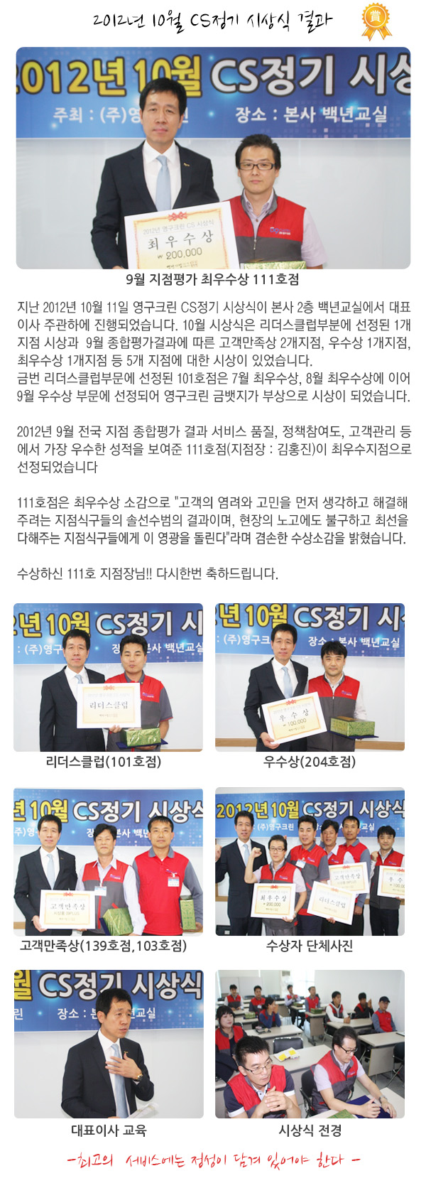 2012년 10월 CS정기 시상식 결과