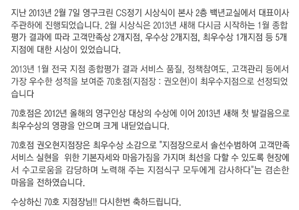 2013년 2월 CS정기 시상식 결과
