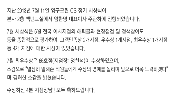 2013년 7월 CS정기 시상식 결과