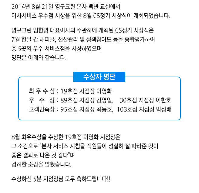 2014년 8월 CS정기 시상식
