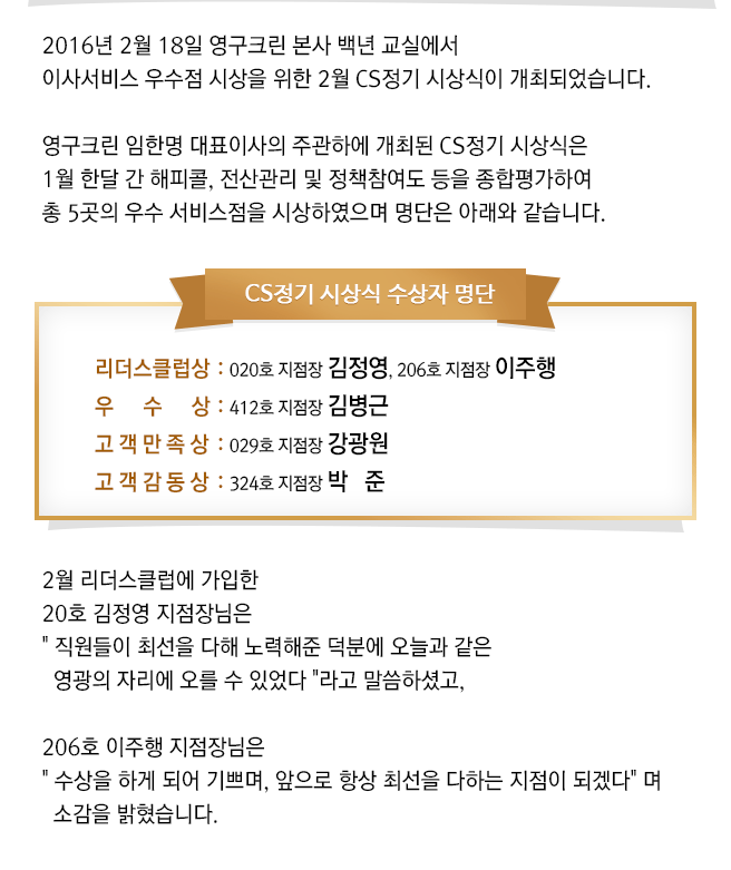 2016년 2월 CS정기 시상식